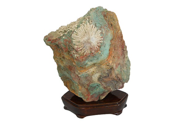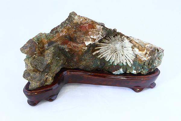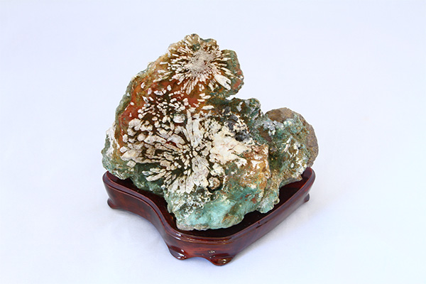 菊花石(きくかせき)はキクの模様があることからそう呼ばれます。その美しさから、鑑賞石の最高峰とも言われています。この石がどのようにしてできたのかは、現在でも定説がありません。